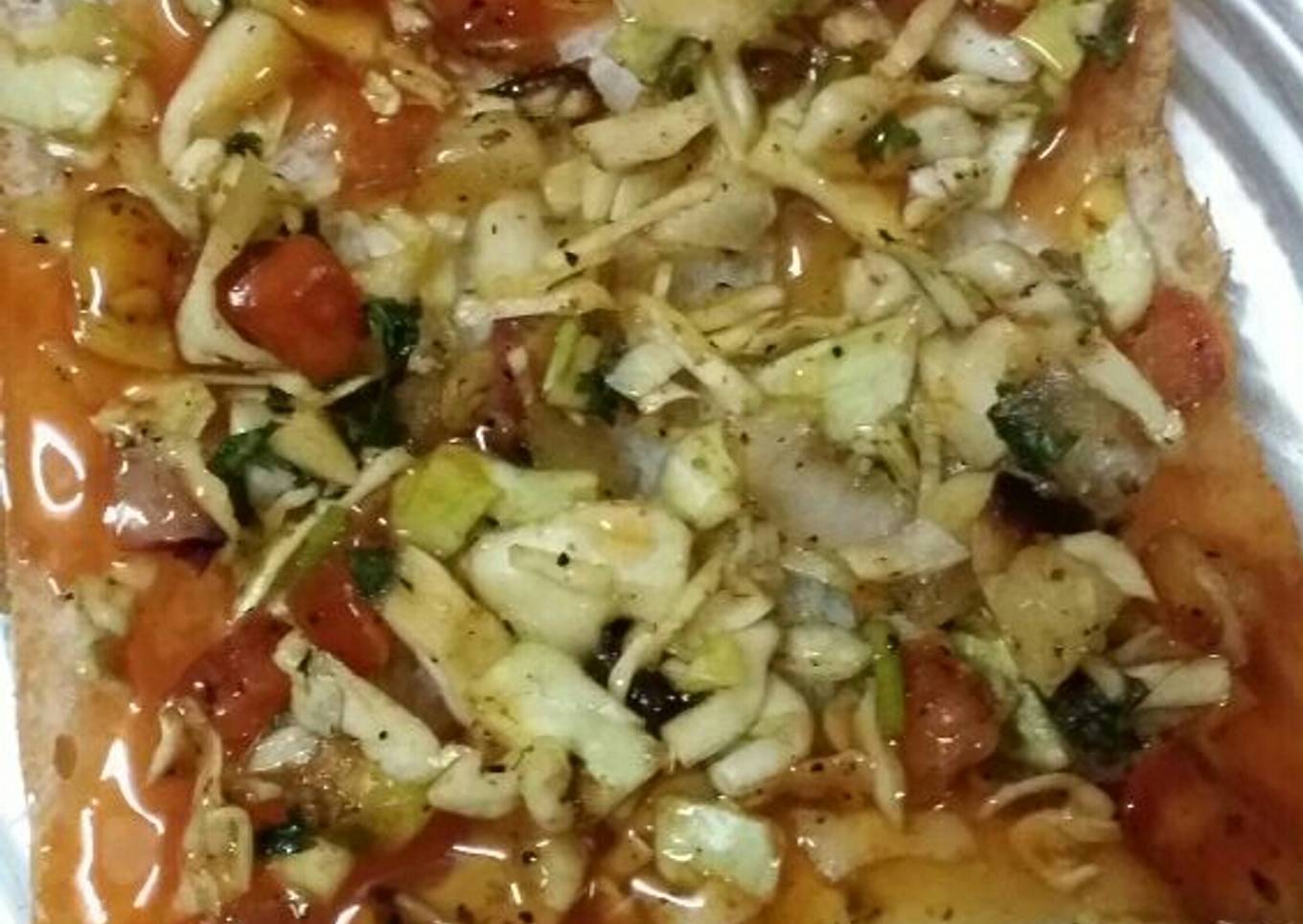 - Take bread slice, spread sauce, and spread vegetable, sprinkle salt, black pepper and chat masala to taste.