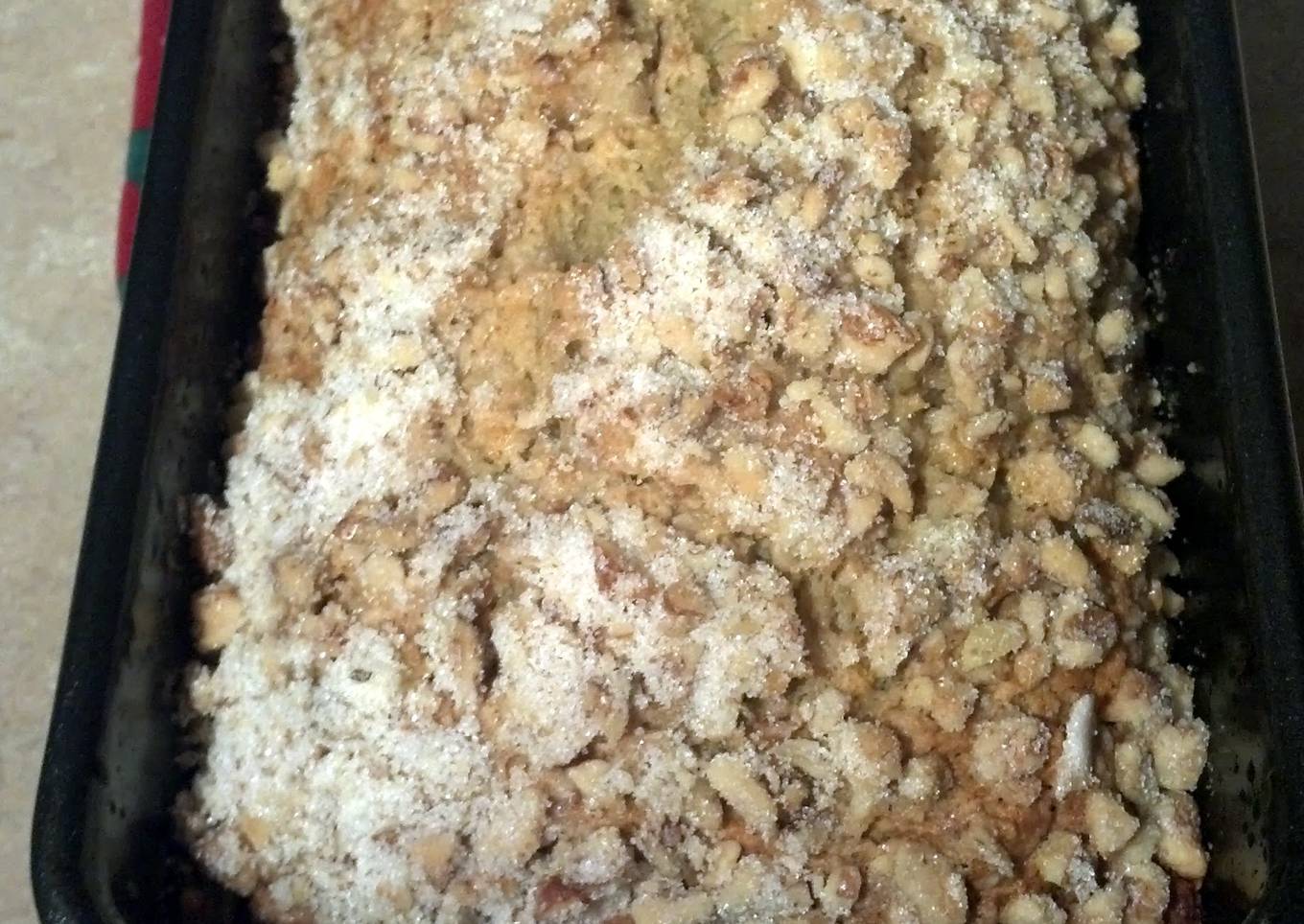 - Transfer to the prepared loaf pan. Mix the nuts and sugar and sprinkle evenly over batter.