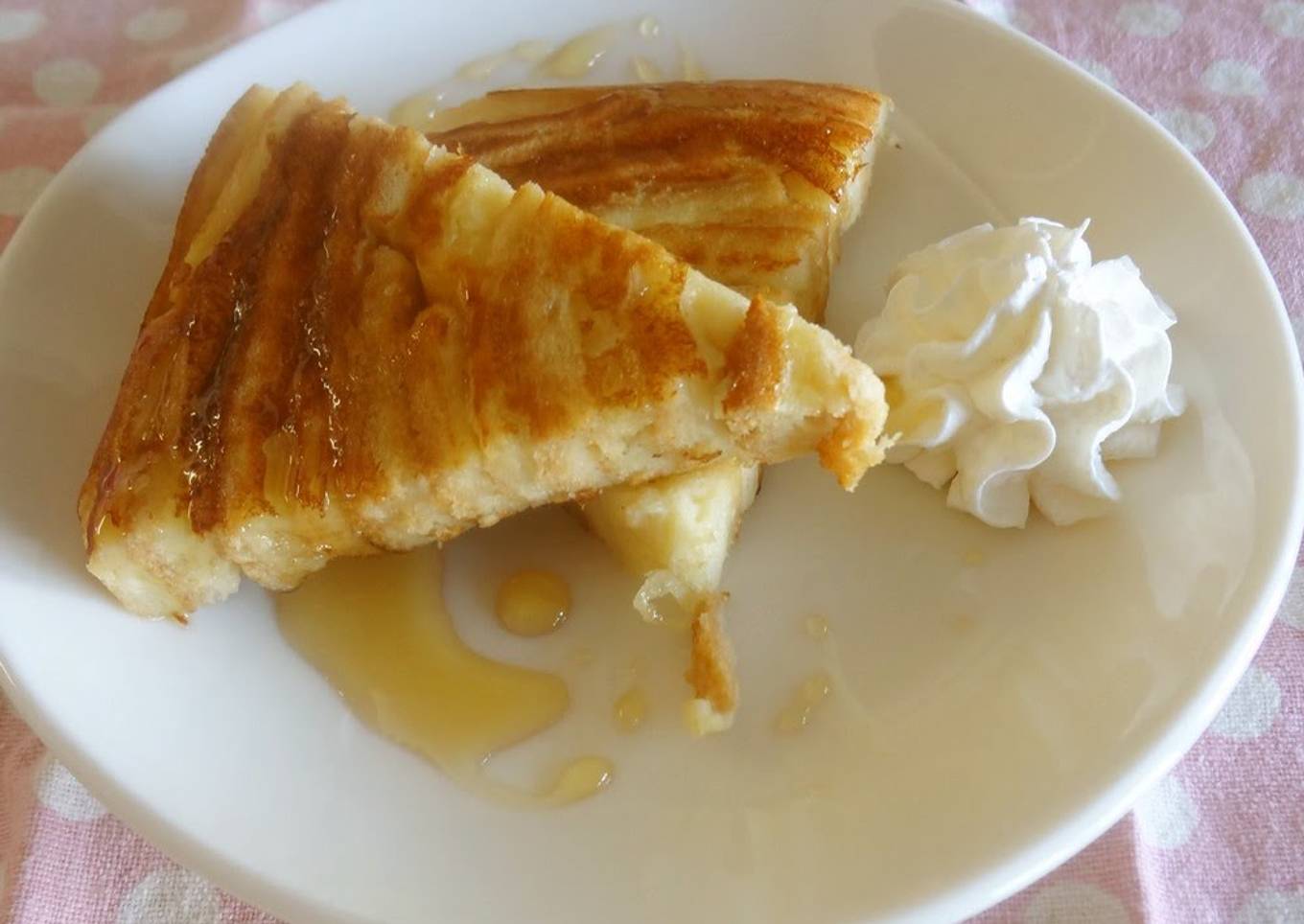 - Once it has cooked to a nice brown colour, cut it like a cake, and pour the syrup or your choice of sauce. It's done.